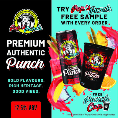 Select orders receive a FREE can of Pops Punch Jamaican Rum Punch Fruit Punch along with next delivery